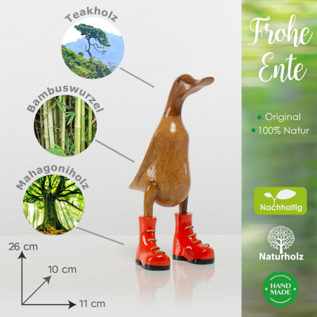 Dekorative Entenfigur ist ein feines Schmuckstück für Ihre Innenausstattung! Jede hölzerne Ente ist ein Unikat und wird von indonesischen Schnitzmeistern in liebevoller Handarbeit gefertigt.