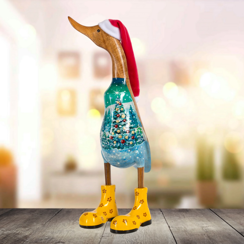 Entdecken Sie „ Winterbaum“, eine außergewöhnliche Holzente, die mit viel Liebe zum Detail von Hand bemalt wurde.