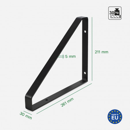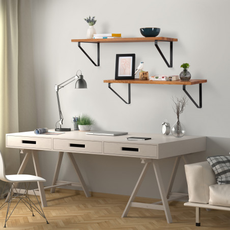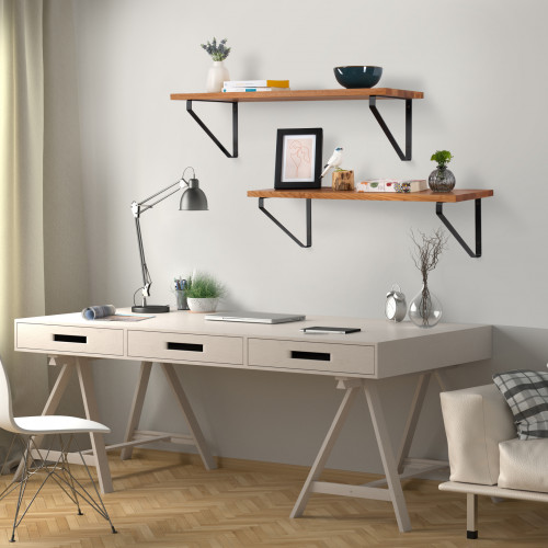 Holzregal RAY - 25cm Tief mit Metallhalterung Schwarz