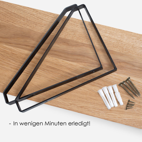 LIEFERUMFANG: 1 Stück Wandholzregal aus Eiche - Regalgröße (L x B x H) 40-120 x 18,5 x 2 cm - inkl. Metallhalterungen mit Befestigungsset (Belastbarkeit bis 15 kg)