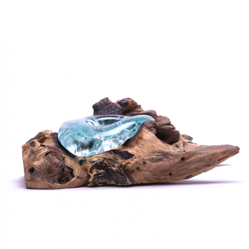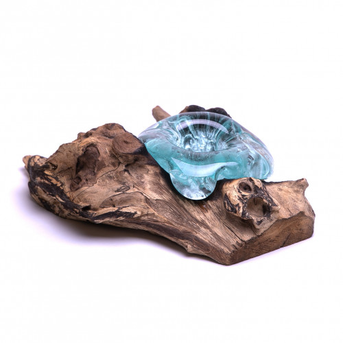 Diese besondere Mini-Vase bzw. dieser Kerzenhalter vereint naturbelassenes Holz mit einer handgeformten Glasschale und wird so zu einem echten Unikat. Die einzigartige Maserung des Holzes in Kombination mit dem klaren Glas verleiht jedem Stück seinen individuellen Charakter.
