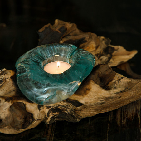 Jeder Kerzenhalter wurde in Handarbeit aus einer natürlichen Teakwurzel gefertigt. Daher können Form, Maserung und Farbe vom abgebildeten Produkt abweichen. Jedes Stück ist ein Unikat.